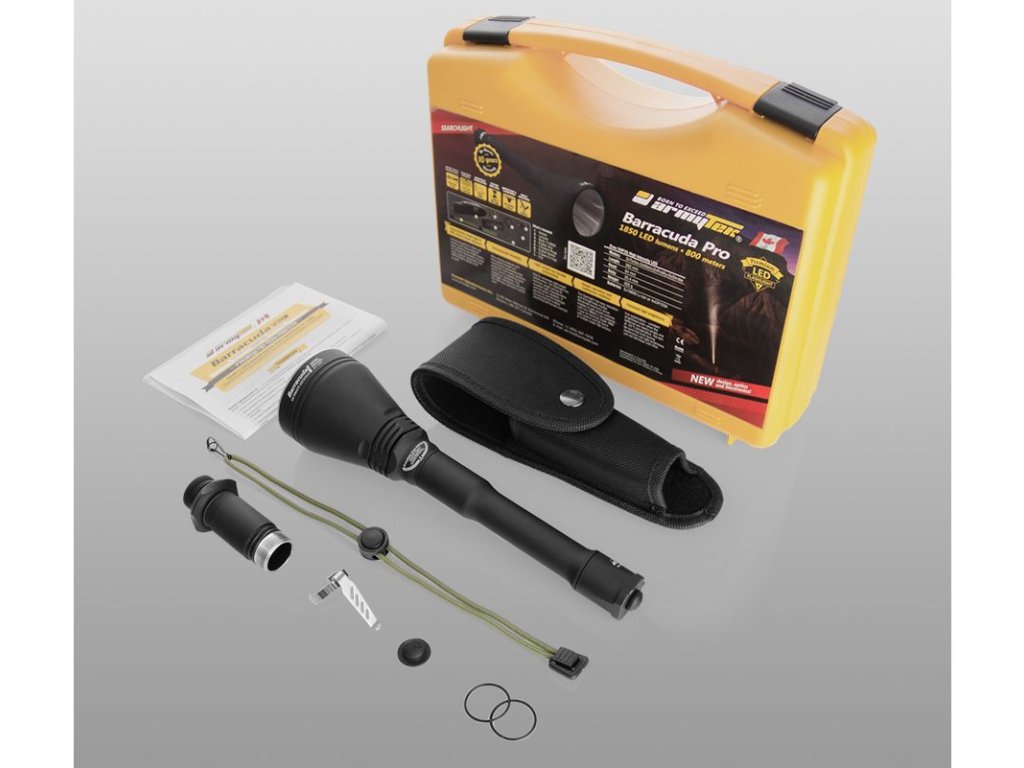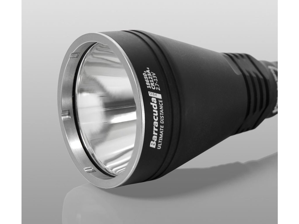 Najlepší dosah svetla od výrobcu ArmyTek má model Barracuda Pro XHP35 Hi ktorá produkuje výkon až 1850 lumenov a dosahom svetla do 900 metrov podľa normy ANSI/NEMA. Veľkou výhodou vyhľadávacieho svetla Barracuda Pro je možnosť napájať ju jedným Li-ion akumulátorom 18650 najlepšie s kapacitou nad 3000mAh. Vďaka tejto možnosti takmer nemá konkurenciu. V balení sa nachádza aj telo na 2 akumulátory ktoré stačí jednoducho prešróbovať. Výkon ostáva identický no výdrž sa predĺži pri použití 2 akumulátorov. V Prípade že použijete 2 akumulátory musia mať PCB ochranu aby sa nezničili príliš hlbokým vybitím. Barracuda Pro je skutočnou pýchou medzi ručnými značkovými LED baterkami aj vďaka už spomenutými výhodami ale aj vďaka vodotesnosti do 50 metrov IP68 najväčšie krytie a nárazuvzdornosťou z výšky až 30 metrov okrem šošovky. Telo svietidla ARMYTEK BARRACUDA PRO XHP35 HI je vyrobené zo zliatiny leteckého hliníka z jedinečnou povrchovou úpravou - technicky vyspelým pogumovaním. Vďaka tomu je na dotyk veľmi príjemná a hneď je cítiť zmenu pri ktorej viete že držíte v ruke neobyčajné svetlo. Počet režimov je 9 čo postačuje na nastavenie presne takého výkonu aký v danej chvíli potrebujete. Ovládanie je veľmi jednoduché. Keď je dotiahnutý reflektor je možné zapnúť výlučne 100% výkon 1850 lumenov čo je veľká výhoda pretože nedokážete nechcene zapnúť slabší v tej chvíli nežiadúci režim. Ak chcete aktivovať slabší režim je treba povoliť reflektor o asi 1 cm nechať ho povolený a vtedy môžete vypínačom v zdanej časti prepínať jednotlivé režimy. Môžete vypínač namačkávať bez hluku alebo zo zvukovým doprovodom prepínať stláčaním vypínača. Ak chcete prejsť v sekunde na plný výkon stačí len dotiahnuť reflektor. Barracuda Pro XHP35 Hi je vhodná pre tie najnáročnejšie potreby vo vojsku, lovecké účely, turistiku a mnoho iných odvetvý.Technické parametre