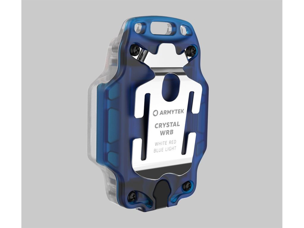KOMPAKTNÁ MULTI BATERKA S PRÍDAVNÝM ČERVENO-MODRÝM MAJÁKOM Crystal WRB je multifunkčná alternatíva k bežným modelom kľúčenky s jasným bielym svetlom a dodatočným červeno-modrým výstražným signálom. Dizajn, materiál tela a špeciálne usporiadanie LED diód poskytujú široký uhol vyžarovania 140°, optimálny pre použitie na blízku vzdialenosť. Záplavový lúč robí z Crystal WRB vynikajúci hlavný alebo doplnkový zdroj svetla pre jogging, cyklistiku, údržbu auta alebo každodenné úlohy. Okrem bieleho svetla LED je Crystal WRB vybavený LED, ktorá sa používa ako červeno-modrý výstražný signál. Crystal WRB má kapacitu na danú veľkosť batérie a vydrží až 50 dní v režime minimálneho jasu. Baterka v taške nezaberie veľa miesta, ľahko sa zmestí do vrecka a vďaka širokej oceľovej spone je bezpečne pripevnená na opasok alebo popruh batohu. Mäkký elastický pás v súprave umožňuje pohodlné hands-free ovládanie, nešúcha pokožku a nezanecháva žiadne stopy. Silikónové krúžky umožňujú inštaláciu baterky na bicykel. Vďaka spoľahlivému krúžku možno Crystal WRB nosiť aj so sadou kľúčov ako štýlový doplnok.Dodatočné parametre
