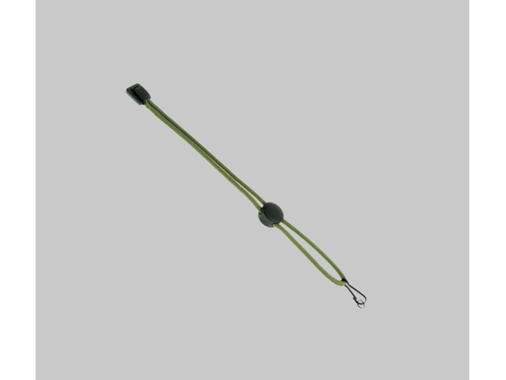 Veľkostne nastaviteľná šnúrka na zápästie vyrobená z odolného paracordu a oceľovej karabíny pre rýchle vybratie a montáž na baterku.
