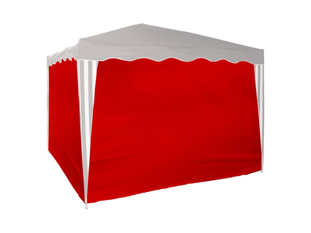 Bočné steny pre pavilóny, altánky veľkosti 3 x 3 m, so svetlou výškou 190 cm. Steny sa pripevňujú pomocou suchého zipsu. Balenie obsahuje: 2x bočná stena s oknom, 1x bočná stena bez okna, úplne uzatvorená, 1x dvojdielna bočná stena bez okna. Bočné steny pre pavilóny, altánky veľkosti 3 x 3 m, so svetlou výškou 190 cm. Steny sa pripevňujú pomocou suchého zipsu. Balenie obsahuje: 2x bočná stena s oknom, 1x bočná stena bez okna, úplne uzatvorená, 1x dvojdielna bočná stena bez okna. Farba: červená Materiál: polyester 180 g/m2 Rozmery okna (ŠxV): 1000 x 960 mm Rozmery steny (ŠxV): 2900 x 1900 mm Hmotnosť balenia: 3 kgDodatočné parametre