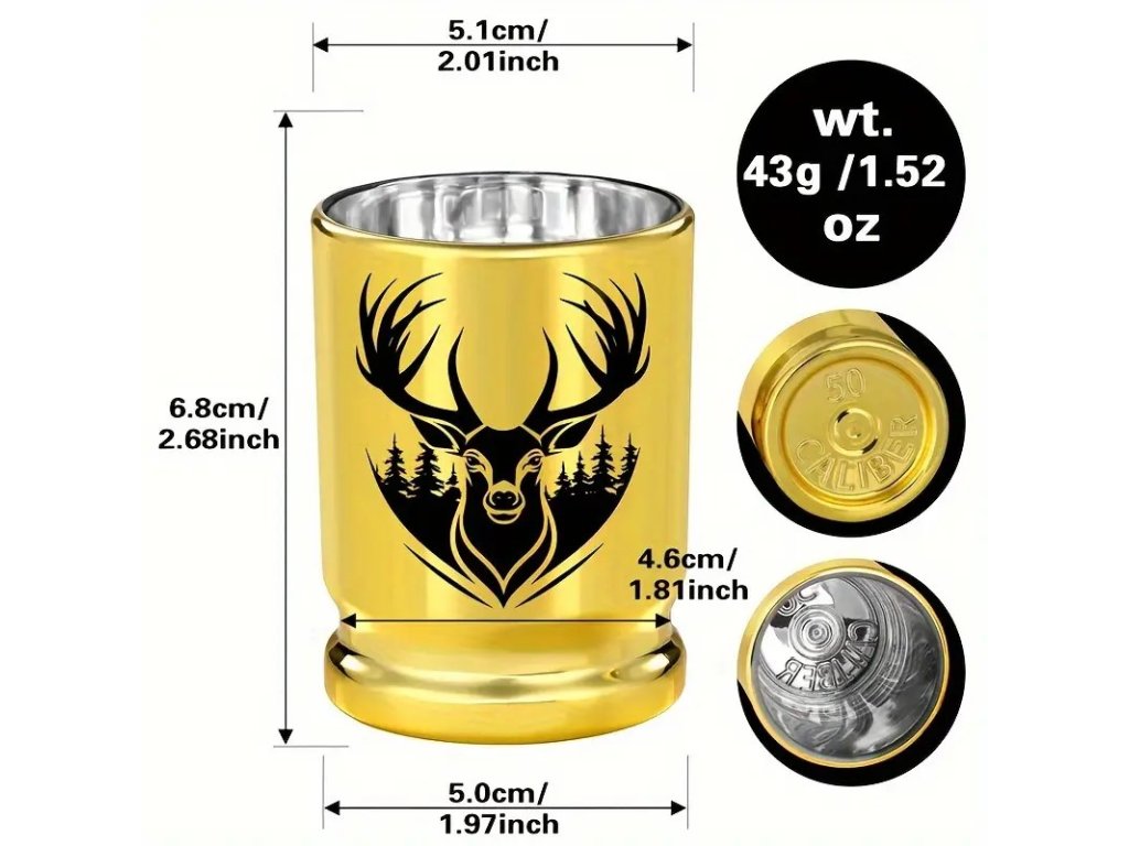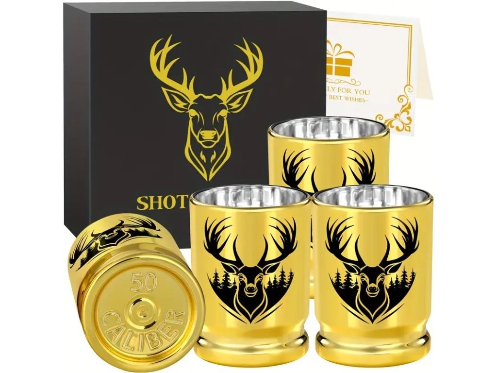 Sada plastových 95ml pohárikov s motívom jeleňa. Darčekové balenie s kartičkou, vhodné ako darček pre poľovníka.
