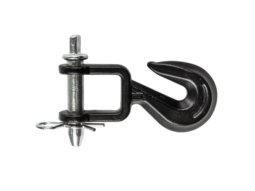 Hák na zavesenie ťažných reťazí, lesníckych reťazí v lesnom hospodárstve alebo na pripevnenie k ťažným lištám v poľnohospodárstve. Mnohostranne použiteľný, veľké rozovretie, s čapom so závlačkou. Hák na zavesenie ťažných reťazí, lesníckych reťazí v lesnom hospodárstve alebo na pripevnenie k ťažným lištám v poľnohospodárstve. Mnohostranne použiteľný, veľké rozovretie, s čapom so závlačkou. Farba: čierna Maximálne zaťaženie: 4100 kg Celkové rozmery (DxŠxV): 180 x 125 x 38 mm Hmotnosť: 1,37 kgDodatočné parametre
