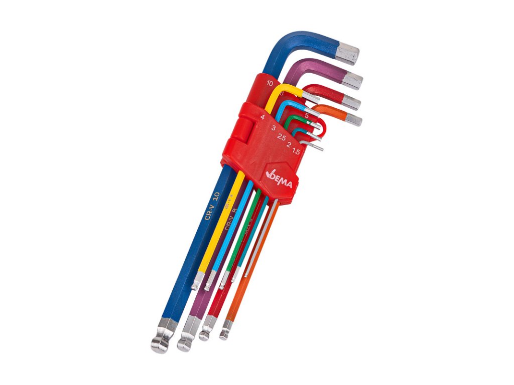 Šesťhranné kľúče z pozinkovanej chróm - vanádiovej ocele, dlhé prevedenie umožňuje lepšiu manipuláciu a vyšší krútiaci moment aj u menej prístupných spojov. Farebným označením každého kľúča je zabezpečené rýchle a presné rozlíšenie veľkostí. Praktický držiak s označením veľkostí. Šesťhranné kľúče z pozinkovanej chróm - vanádiovej ocele, dlhé prevedenie umožňuje lepšiu manipuláciu a vyšší krútiaci moment aj u menej prístupných spojov. Farebným označením každého kľúča je zabezpečené rýchle a presné rozlíšenie veľkostí. Praktický držiak s označením veľkostí. Veľkosť: 1,5 / 2 / 2,5 / 3 / 4 / 5 / 6 / 8 / 10 mm Dlhé rameno: 91 / 100 / 112 /127 / 142 / 160 / 180 / 200 / 230 mm Krátke rameno: 16 / 17 / 21 / 24 / 28 / 33 / 36 / 44 / 50 mm Rozmery sady (DxŠxV): 230 x 70 x 23 mm Hmotnosť: 411 gDodatočné parametre