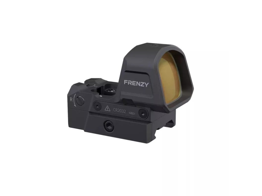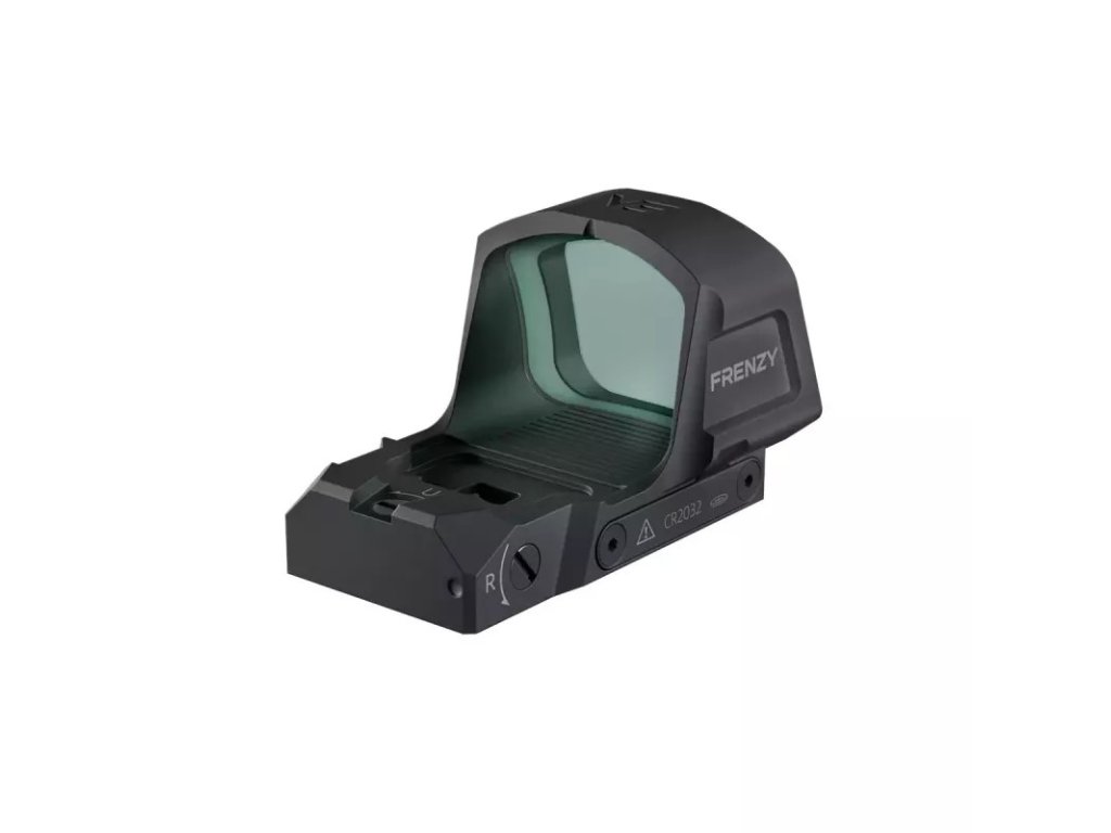 Kolimátor Frenzy s veľkým oknom 26x32mm ponúka široké zorné pole pre dynamickú streľbu a súťaže. Vyrobený z hliníkovej zliatiny 7075-T6 pre výnimočnú odolnosť a nárazuodolnosť do 1500 G, optimalizovaný pre použitie na pištoliach. Červený bod s veľkosťou 6 MOA umožňuje rýchle zameranie cieľa, ideálny pre streľbu na krátke vzdialenosti, kde je prioritou rýchlosť. Bočné ukladanie batérie umožňuje jej výmenu bez potreby opätovného nastavenia zameriavača.