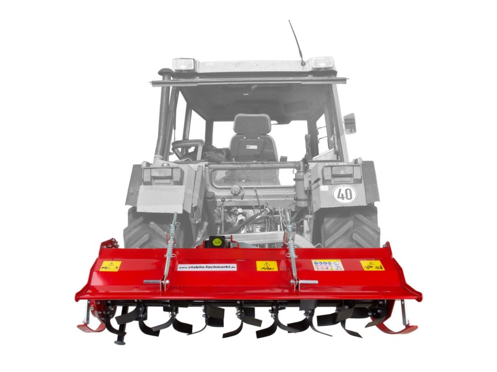 Rotačný kultivátor pre traktory do 50 konských síl, s pracovnou šírkou 180 cm, vhodný na obrábanie menších plôch, záhrad. Výškovo nastaviteľný ochranný plech, voľnobeh, možnosť nastavenia hĺbky frézovania po 4 stupňoch, trojbodový záves. Rotačný kultivátor pre traktory do 50 konských síl, s pracovnou šírkou 180 cm, vhodný na obrábanie menších plôch, záhrad. Výškovo nastaviteľný ochranný plech, voľnobeh, možnosť nastavenia hĺbky frézovania po 4 stupňoch, trojbodový záves. Pružinová ochranná klapka proti vysunutiu, bezúdržbový prevodový stupeň v olejovom kúpeli, štandardné pripojenie cez kĺbový hriadeľ. Pracovná šírka: 1800 mm 48 frézovacích nožov Náhon: 540 ot./min. pravotočivý (v smere hodinových ručičiek) Čap spodného ramena: Ø 28 mm Čap horného ramena: Ø 22 mm kat. II Pružinová tyč: Ø 22 mm 11-násobne nastaviteľná Rozmery (ŠxHxV): 2030 x 790 x 1110 mm Hmotnosť: 326 kg Upozornenie: Pred uvedením do prevádzky je potrebné skontrolovať / doplniť hladinu oleja.Dodatočné parametre