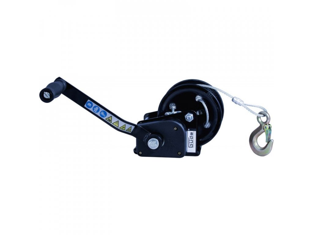 Ručný lanový navijak na vodorovné ťahanie bremien. Vhodný na použitie na miestach bez elektriny, napríklad v garáži, na záhrade, na prívesoch alebo v lesníctve a poľnohospodárstve. Zdvíhací hák s otvorom v tvare slzy, integrovaná brzda, ručná kľuka s mäkkým úchopom. Základová doska s otvormi pre pevnú montáž na vhodných oporných bodoch, oceľové lano.
