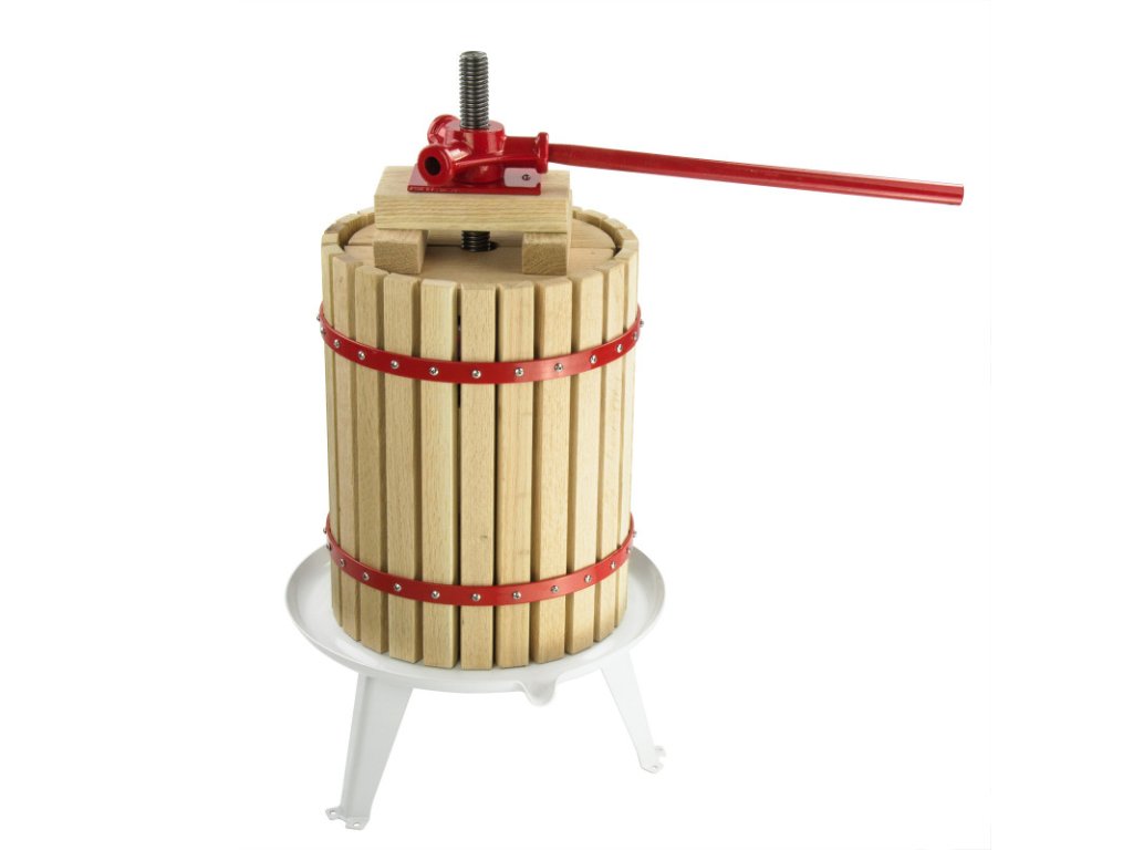 Lis na ovocie a bobuľoviny s mechanickým prevodom, priebežná oceľová hriadeľ. Vhodný na jablká, hrušky, bobuľoviny a podobne. Tlakové dosky a lisovací kôš sú vyrobené z masívneho dreva. Odkvapkávacia miska a nohy sú vyrobené z ocele. Odkvapkávacia miska je natretá potravinárskou farbou. Lis na ovocie a bobuľoviny s mechanickým prevodom, priebežná oceľová hriadeľ. Vhodný na jablká, hrušky, bobuľoviny a podobne. Tlakové dosky a lisovací kôš sú vyrobené z masívneho dreva. Odkvapkávacia miska a nohy sú vyrobené z ocele. Odkvapkávacia miska je natretá potravinárskou farbou. Trojbodový držiak otočnej páky na vretene. Ovocie musí byť pred lisovaním rozdrvené v mlynčeku na ovocie. Lis sa dodáva bez plachtičky. Objem koša: 19 l Výška koša: 370 mm Vnútorný priemer koša: 255 mm Rozmery vretena (ØxV): 26 x 530 mm Závit vretena: T26x4 Priemer odkvapkávacej misky: 370 mm Výška výpustu: 145 mm Celkové rozmery (ŠxDxV): 370 x 370 x 700 mm Hmotnosť: 13 kgDodatočné parametre