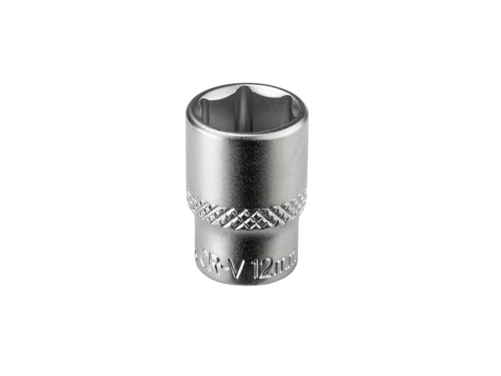 Šesťhranný nástrčkový kľúč, krátke prevedenie, z chróm-vanádiovej ocele, pochrómovaný povrch, kosouhlo vrúbkovaný. Šesťhranný nástrčkový kľúč, krátke prevedenie, z chróm-vanádiovej ocele, pochrómovaný povrch, kosouhlo vrúbkovaný. Otvor kľúča: 12 mm Upínanie: 1/4" Priemer: 17 mm Celková dĺžka: 25 mm Hmotnosť: 22 gDodatočné parametre