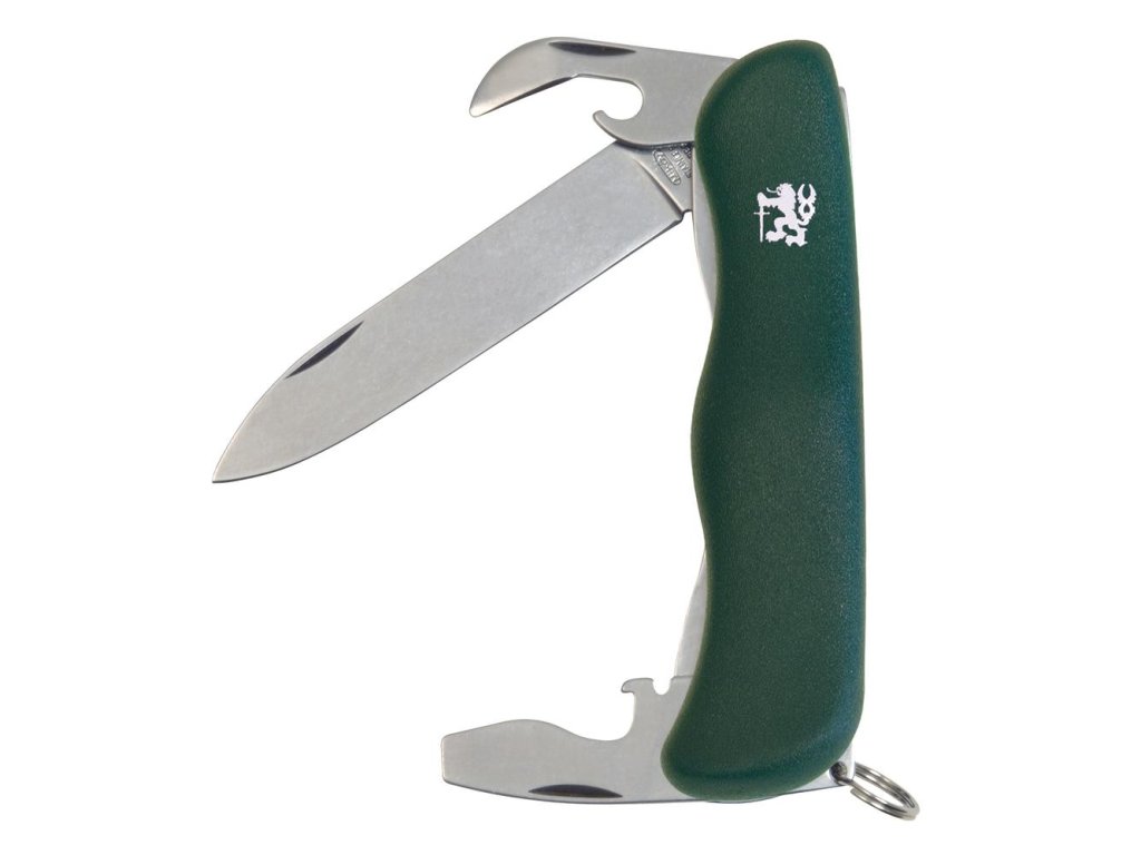 čepeľ, otvárač na fľaše/skrutkovač/drážka na odizolovanie vodičov, otvárač na konzervy, krúžok