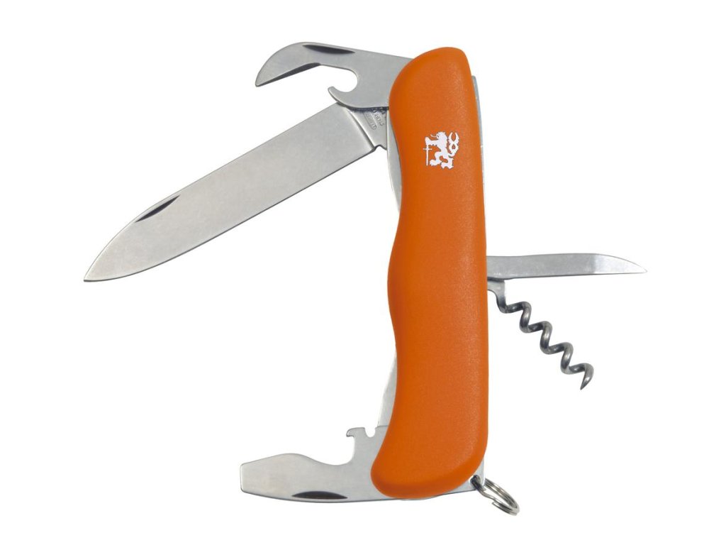 čepeľ, otvárač na fľaše/skrutkovač/drážka na odizolovanie vodičov, otvárač na konzervy, vývrtka, bodec, krúžok