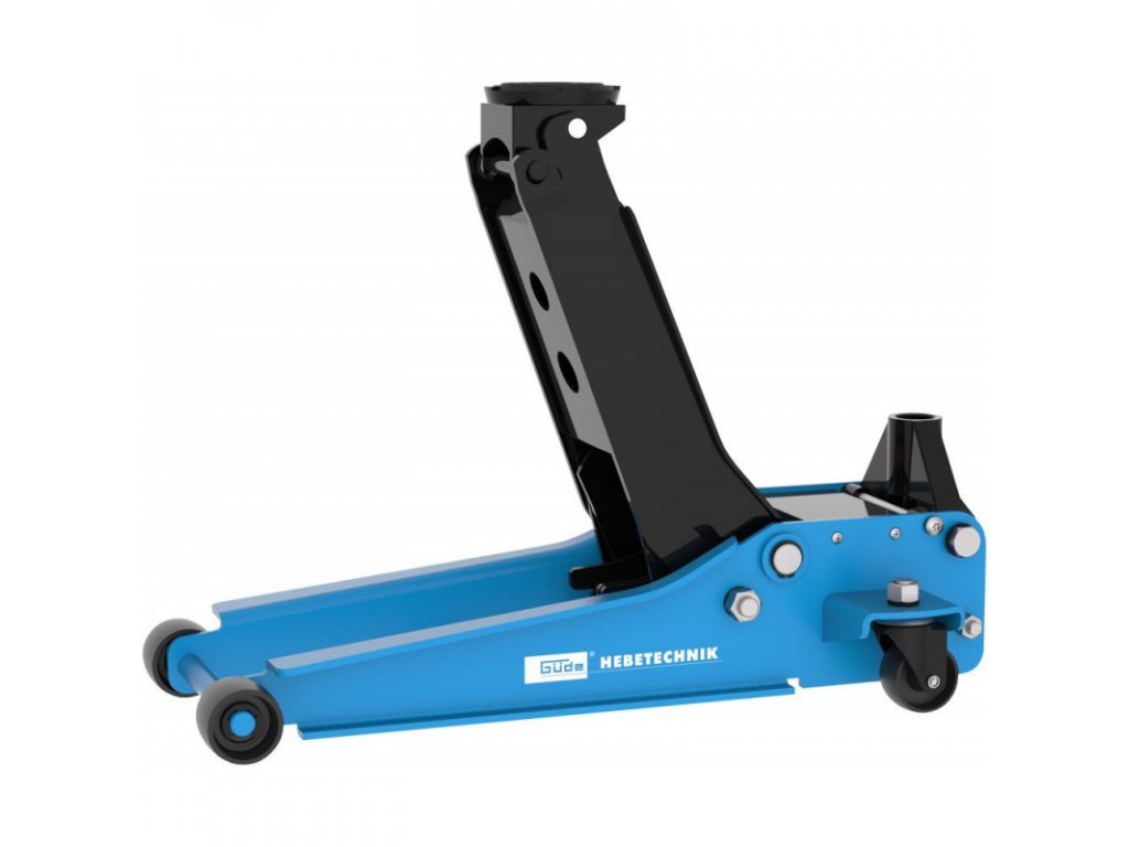 Pojazdný hydraulický zdvihák pre využitie v dielňach, garážach. Dva otočné a dva pevné kolieska. Systém dvojitého valca pre až o 50 % rýchlejšie zdvíhanie. Mimoriadne nízka svetlá výška ideálna pre znížené vozidlá. Gumená podložka na ochranu spodnej časti vozidla. Tyč čerpadla s penovou ochranou vozidla.