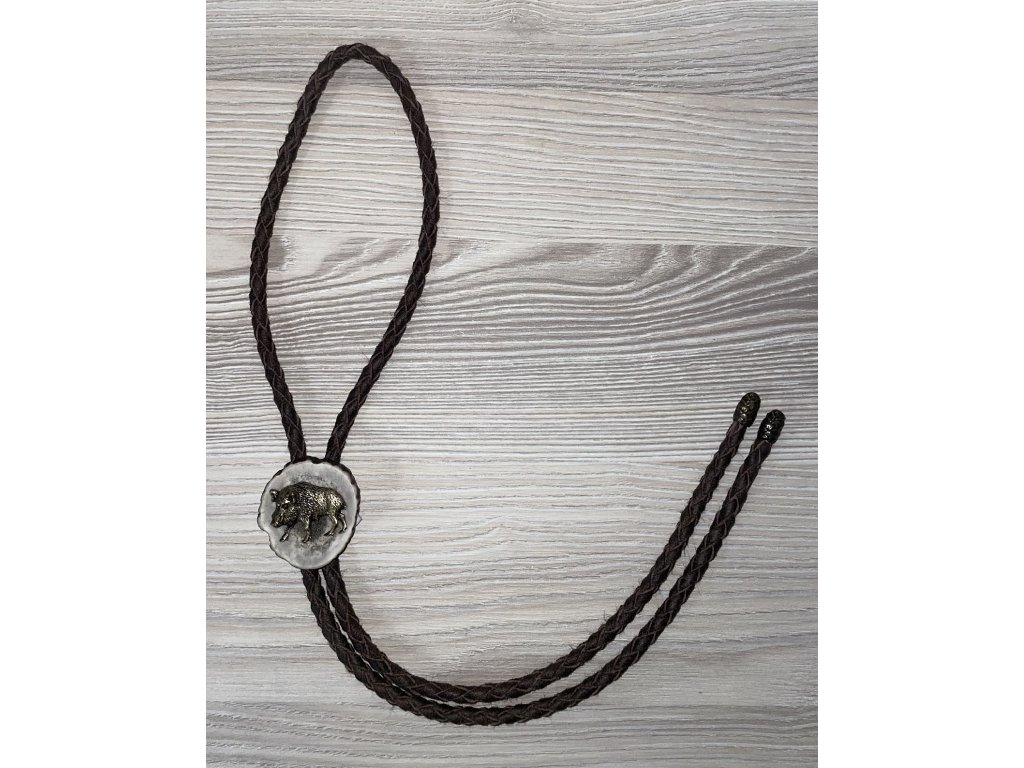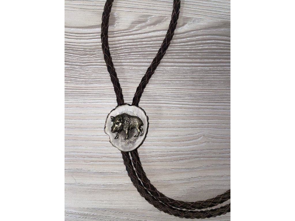 Poľovnícke bola, vkusná náhrada klasickej kravaty. Parohovina rez, široký výber poľovných motívov, remienok bola je vyrobený z pletenej kože ukončený kovovou ozdobou (šiškami).