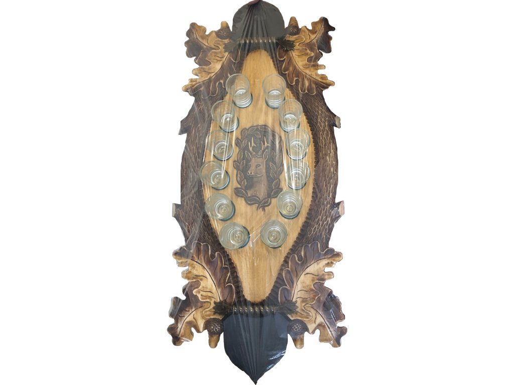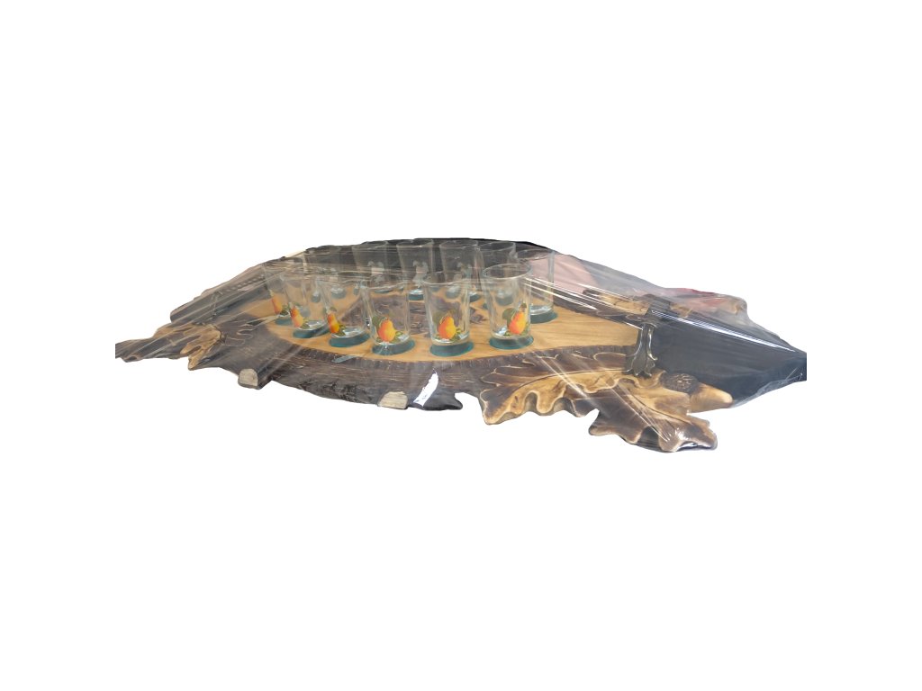 Drevený podnos s motívom srnca. 12 pohárikov 50ml.