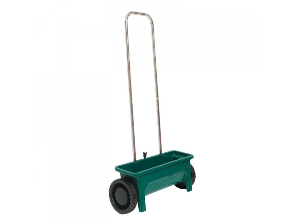 Posýpací vozík na sypanie semien, hnojiva, soli v zime, a podobne. Extra veľké kolesá z PVC, veľká šírka posypu, nastaviteľné množstvo posypu. Nehrdzavejúca konštrukcia. Jednoduché nastavenie vďaka pripojeniam typu plug-and-click. Posýpací vozík na sypanie semien, hnojiva, soli v zime, a podobne. Extra veľké kolesá z PVC, veľká šírka posypu, nastaviteľné množstvo posypu. Nehrdzavejúca konštrukcia. Jednoduché nastavenie vďaka pripojeniam typu plug-and-click. Šírka rozmetania: 450 mm Objem nádoby: 12 l Rozmery nádoby (ŠxHxV): 500 x 130 x 160 mm Veľkosť kolies: 187 mm Šírka kolies: 37,5 mm Materiál: PVC / hliník Vonkajšie rozmery (ŠxHxV): 560 x 200 x 1120 mm Hmotnosť: 1,45 kgDodatočné parametre
