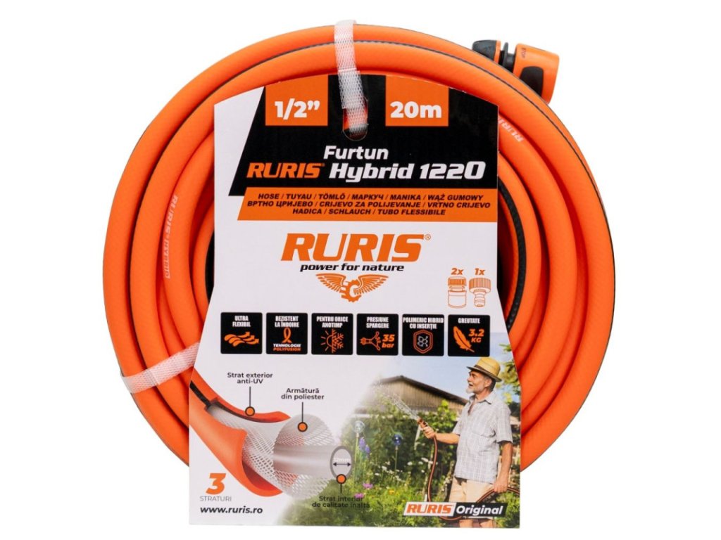 Záhradná hadica RURIS Hybrid1220 je 20-metrová flexibilná hadica s priemerom 12 mm, navrhnutá pre efektívne zavlažovanie záhrad, skleníkov a poľnohospodárskych plôch. Vďaka hybridnej konštrukcii z odolného PVC materiálu zabezpečuje dlhú životnosť a odolnosť voči UV žiareniu, pričom zostáva flexibilná pri rôznych teplotných podmienkach.