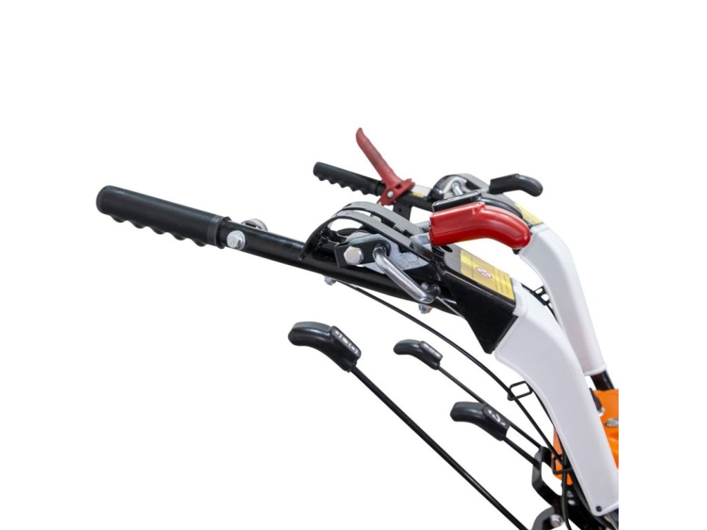 Typ suchej spojky a hliníkové puzdro prevodovky prispievajú k odolnosti a spoľahlivosti kultivačnej páky pri náročnom používaní. Nastavenie madiel vľavo-vpravo a hore-dole umožňuje jednoduché prispôsobenie pracovnej hĺbky a smeru podľa špecifických potrieb užívateľa.