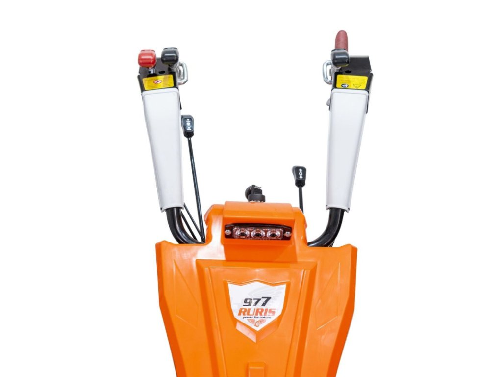 S čistou hmotnosťou 98 kg s nadstavcom je kultivátor Ruris 977C robustný a stabilný, vďaka čomu je vhodný na použitie v rôznych terénnych podmienkach a širokej škále poľnohospodárskych a záhradníckych aplikácií. Okrem toho sa kultivátor dodáva s optimálnym dizajnom, ktorý zahŕňa bezpečnostnú lištu a ochranu motora.
