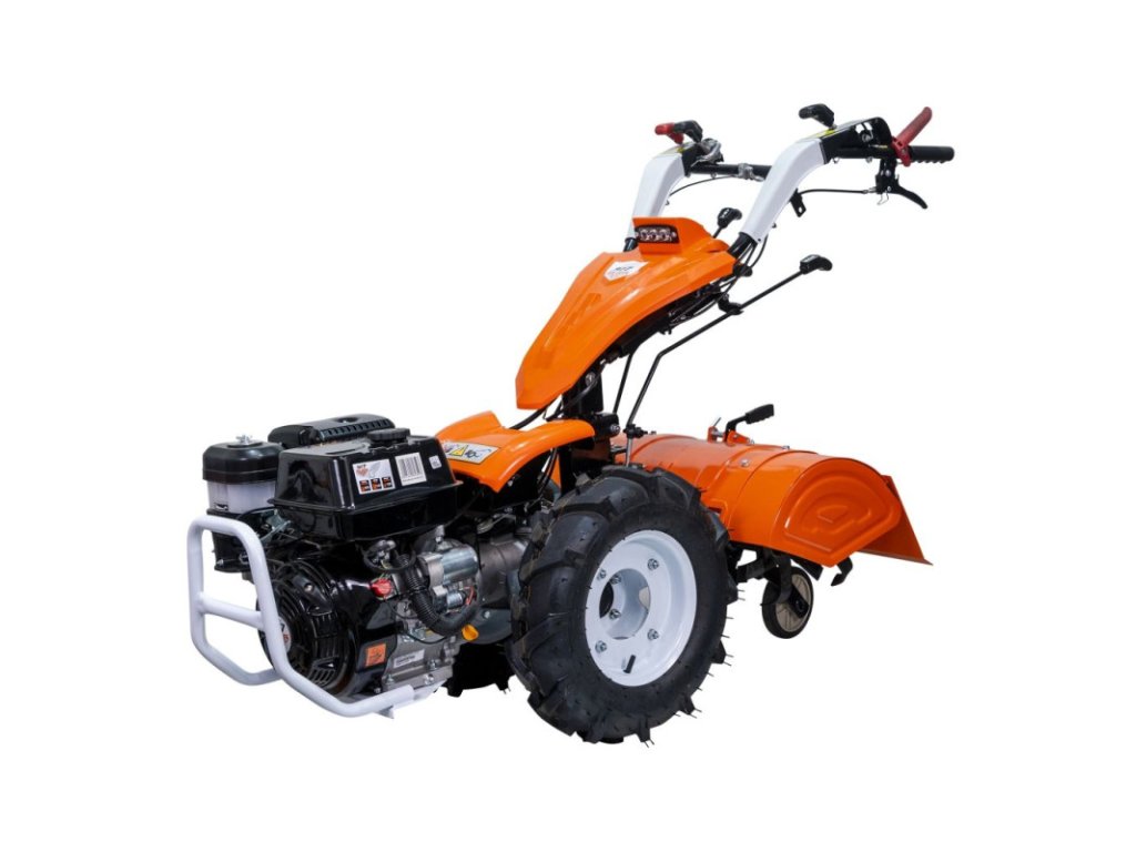 Kultivátor je vybavený manuálnym aj automatickým štartovaním kľúčom, čo používateľom poskytuje flexibilitu a jednoduchosť pri štartovaní a ovládaní stroja. Kužeľový prevod v oleji a diferenciál zaisťujú rovnomerné rozloženie výkonu a vynikajúcu ovládateľnosť.