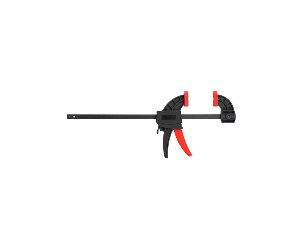 Jednoručná zvierka na rôzne použitie v modelárstve, stolárstve, kovospracujúcom priemysle, poľnohospodárstve, výstavbe domov a pri renovačných prácach. Špeciálny prevod umožňuje vysoký tlak, zabezpečenie proti skĺznutiu, rýchle, individuálne nastavenie prítlačných držiakov. Jednoručná zvierka na rôzne použitie v modelárstve, stolárstve, kovospracujúcom priemysle, poľnohospodárstve, výstavbe domov a pri renovačných prácach. Špeciálny prevod umožňuje vysoký tlak, zabezpečenie proti skĺznutiu, rýchle, individuálne nastavenie prítlačných držiakov. Špeciálny pákový prevod rukoväte na jemné napnutie a ľahké uvoľnenie. Gumové ochranné čiapočky s upevňovacím krížom, neodnímateľné. Výška upínacej čeľuste: 43 mm Šírka upínacej čeľuste: 30 mm Hĺbka upínacej čeľuste: 66 mm Rozsah upnutia: 0 – 310 mm Celkové rozmery (DxŠxV): 470 x 190 x 30 mm Hmotnosť: 414 gDodatočné parametre