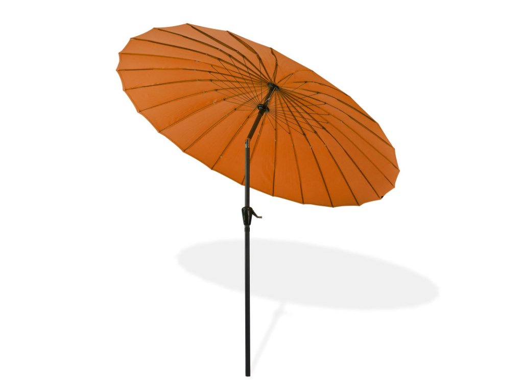 Záhradný slnečník s ovládaním pomocou ručnej kľuky, obojstranné nastavenie sklonu, všetky nosné časti sú vyrobené z kovu a hliníka. Vysoký počet lúčov zaručuje krásny a takmer okrúhly vzhľad. Dvojdielna tyč s pružinovým zámkom na spojenie, kábel kľuky na otváranie a zatváranie. Záhradný slnečník s ovládaním pomocou ručnej kľuky, obojstranné nastavenie sklonu, všetky nosné časti sú vyrobené z kovu a hliníka. Vysoký počet lúčov zaručuje krásny a takmer okrúhly vzhľad. Dvojdielna tyč s pružinovým zámkom na spojenie, kábel kľuky na otváranie a zatváranie. Poťah zo syntetického vlákna s vodoodpudivou vrstvou. Výška nie je nastaviteľná. Farba: terakota oranžová Polyesterová tkanina, vodoodpudivá: 180 g/m2 Priemer: 2500 mm Priechodná výška: 1950 mm Celková výška: 2450 mm Priemer tyče: 38 mm Hmotnosť: 5,4 kg Upozornenie: Vyobrazené ležadlo nie je súčasťou balenia.Dodatočné parametre