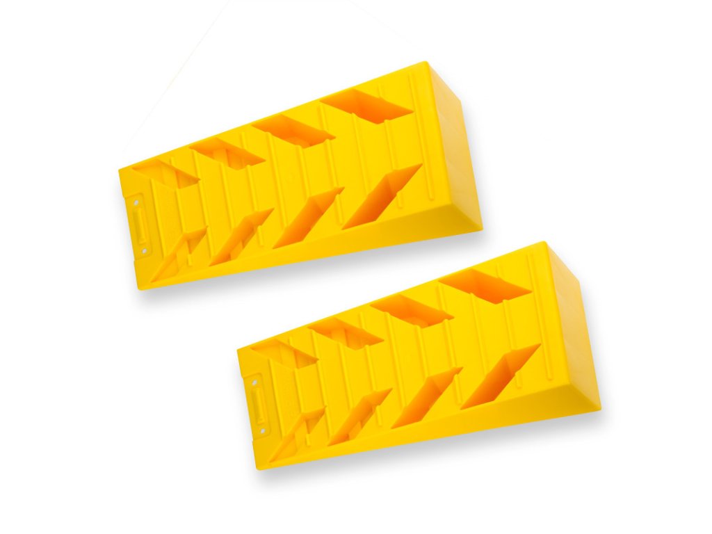 Vyrovnávacie kliny na bezpečné umiestnenie motorových vozidiel, poľnohospodárskych a lesných vozidiel, prívesov, mobilných domov a karavanov. V balení 1 pár (2 ks). S extra priľnavosťou, otvory na zavesenie. Vyrovnávacie kliny na bezpečné umiestnenie motorových vozidiel, poľnohospodárskych a lesných vozidiel, prívesov, mobilných domov a karavanov. V balení 1 pár (2 ks). S extra priľnavosťou, otvory na zavesenie. Materiál: vysokohustotný polyetylén (HDPE) Maximálne zaťaženie na nápravu: 8 t (4 t / klin) Dosadacia plocha (DxŠ ): 400 x 195 mm Výška stúpania: 87 mm Celkové rozmery klinu (DxŠxV): 430 x 195 x 87 mm Celková hmotnosť: 1,52 kgDodatočné parametre